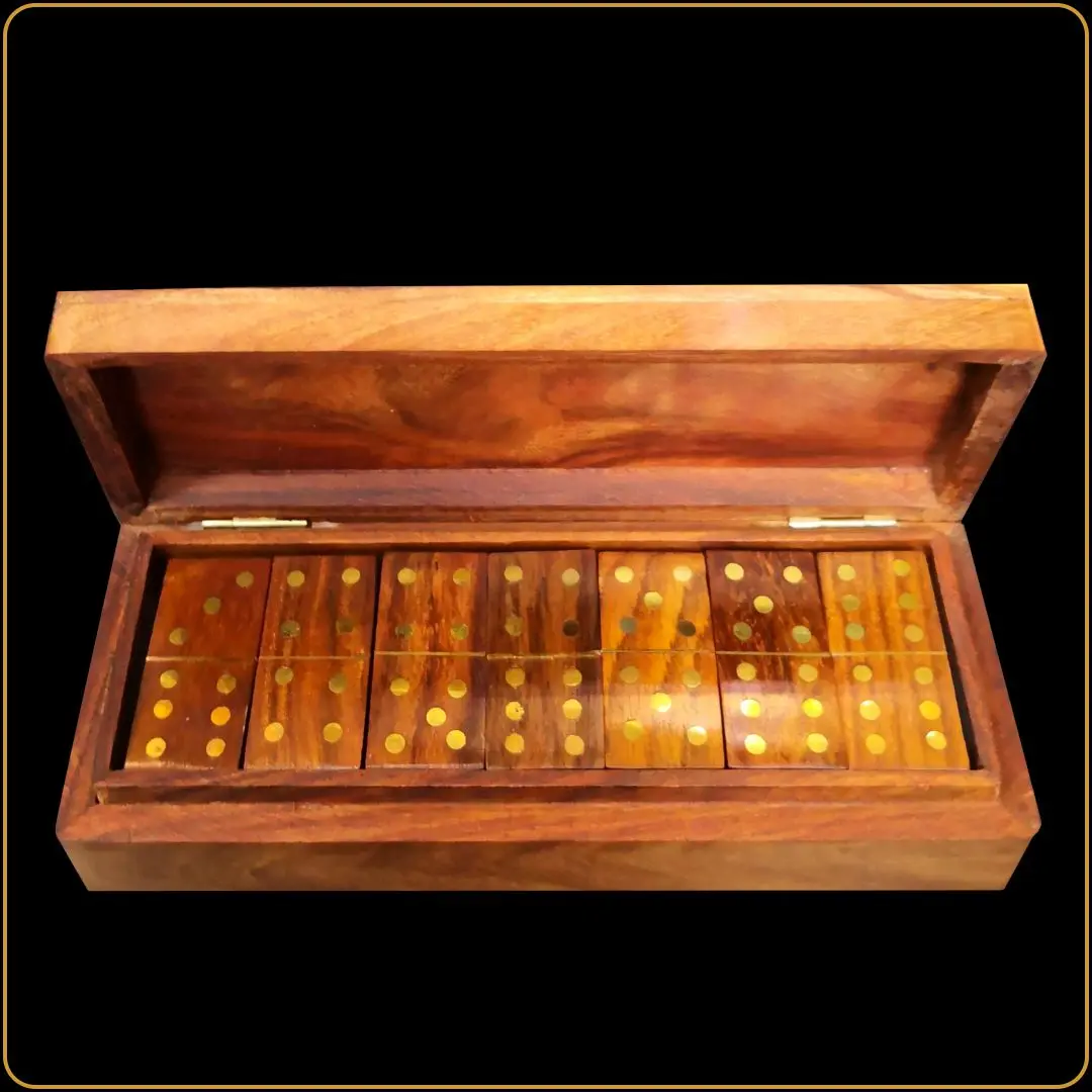 Kutija je izrađena od masivnog drveta, sa elegantnim finišem. Domine su izrađene od čvrste plastike, idealne za dugotrajnu upotrebu.