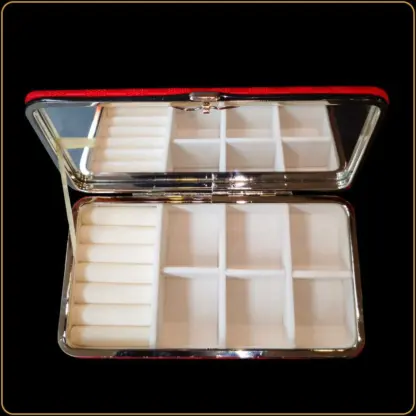 Njena upečatljiva crvena boja, sofisticirani metalni ram i mekana unutrašnjost sa ogledalcem stvaraju osećaj prestiža i organizacije u jednom. Idealan je poklon za žene koje vole red među svojim detaljima i uživaju u sitnicama koje prate svakodnevnu eleganciju.