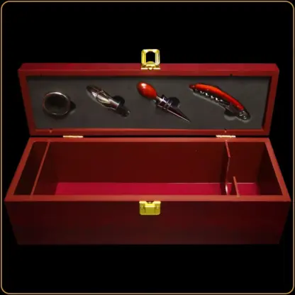 Kutija za vino je elegantan poklon za one koji znaju da uživaju u vinu. Idealna je kao poklon za muškarca, poslovni poklon ili poklon za slavu. Drvena kutija u bordo nijansi, sa zlatnim zatvaranjem i elegantnim vinskim priborom, pravi je izbor za one koji poklanjaju sa stilom.