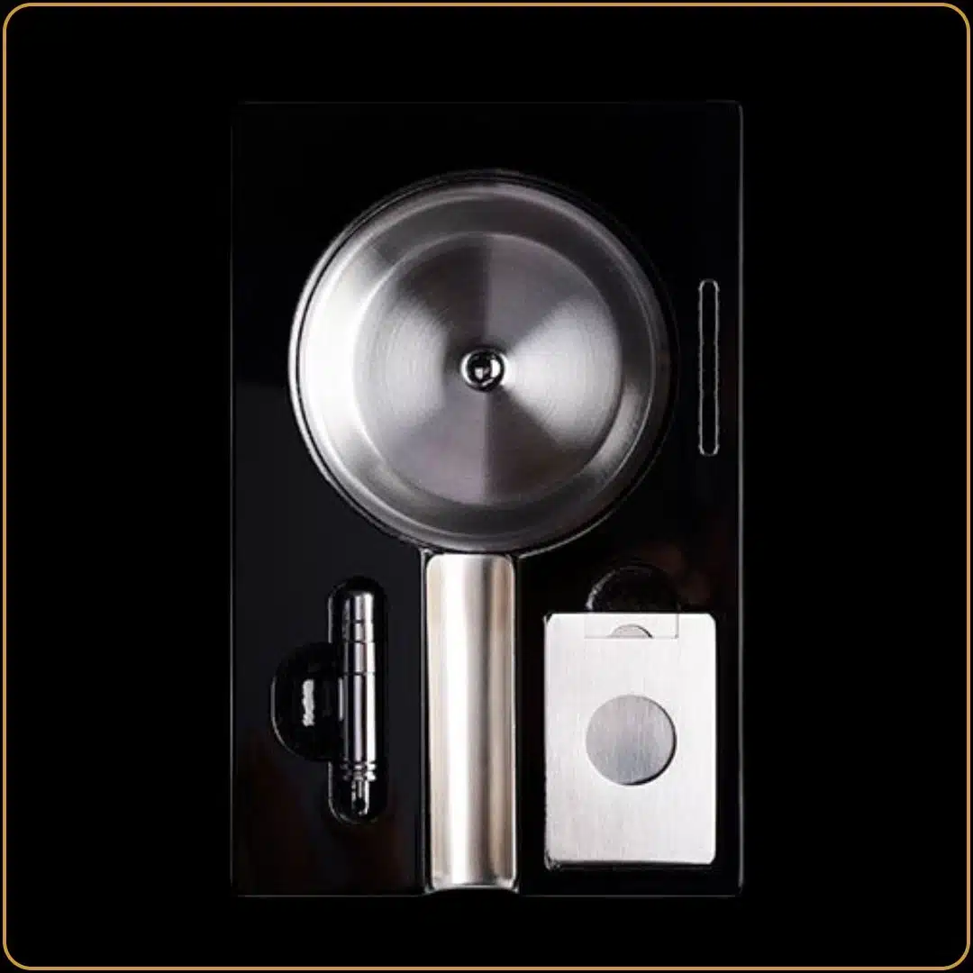 Ovaj poklon za muškarca koji voli cigare sadrži sve što mu treba za uživanje: elegantnu pepeljaru, precizan sekač i bušač za cigare – sve u savršenoj harmoniji, sa osećajem ozbiljnosti i ukusa. Idealan je za onog kome želiš da kažeš: „Znam ko si i koliko zaslužuješ.“