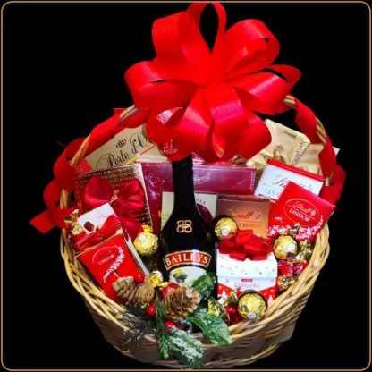 U srcu ove raskošne korpe nalazi se Baileys Irish Cream – liker koji savršeno kombinuje kremasti ukus, notu vanile i viskija. Ovaj simbol elegancije često je izbor onih koji poklanjaju sa stilom. Za slične ukuse i prilike, pogledajte i našu ponudu poklon korpi za žene.
