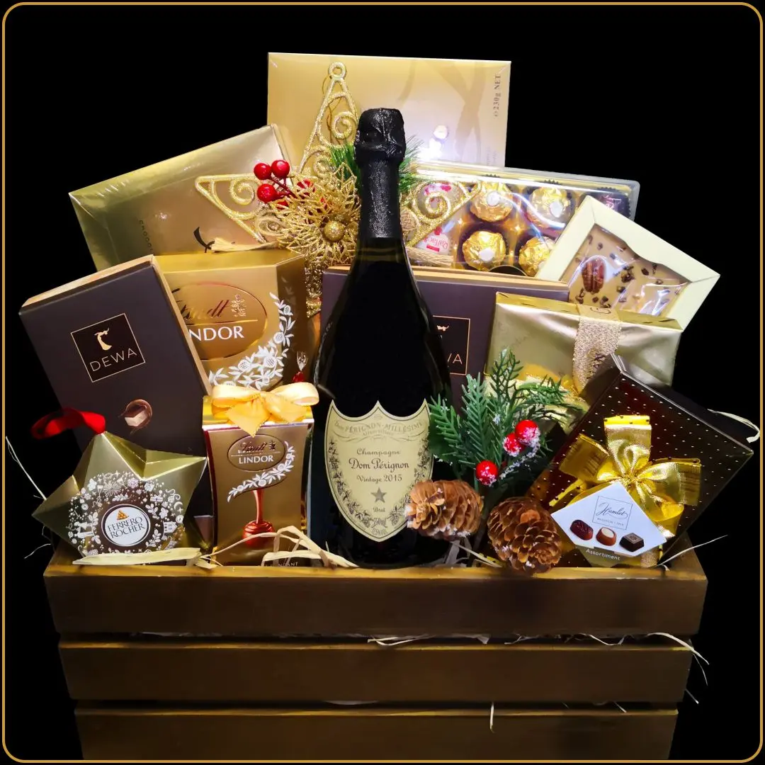 Novogodišnji poklon Dom Perignon je ekskluzivna praznična poklon gajbica sa najpoznatijim francuskim šampanjcem i vrhunskim čokoladama. Namenjena je onima koji žele da ostave snažan utisak – bilo da se radi o poslovnim poklonima, VIP osobama ili damama sa izraženim osećajem za stil. Ako želite da praznični poklon govori više od reči, ovo je pravi izbor.