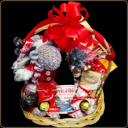 Novogodišnji poklon Invincible je raskošna praznična poklon korpa sa crvenim vinom, ekskluzivnim Lindt i Ferrero čokoladama i neodoljivom novogodišnjom plišanom igračkom. Idealna je kao pažljivo odabran poklon za ženu koja voli prazničnu čaroliju i slatke trenutke. Ova korpa je savršen poklon za Novu godinu – topla, nežna i puna praznične emocije.