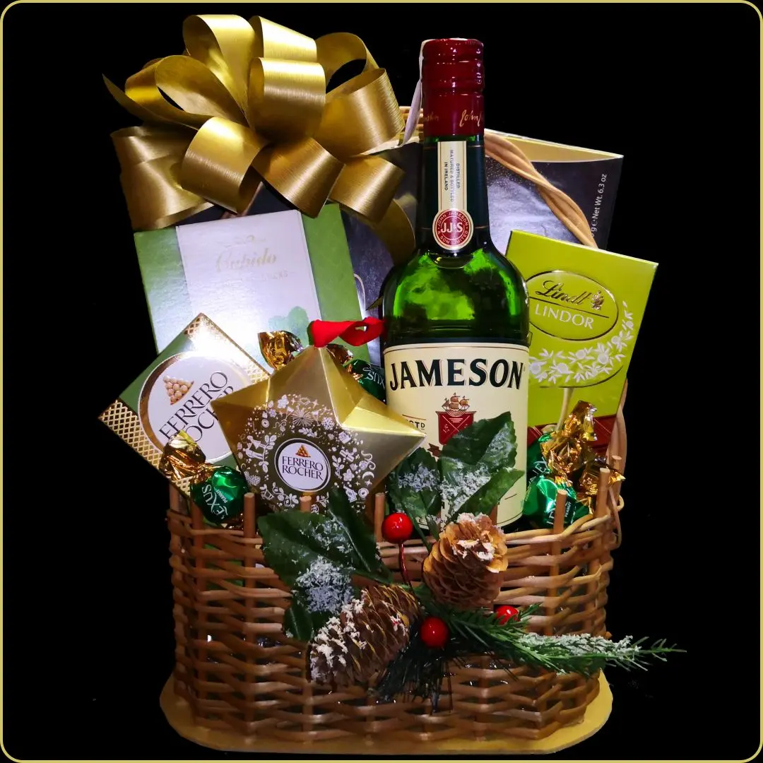 🎁 Novogodišnji poklon Jameson – praznična korpa sa viskijem i slatkišima