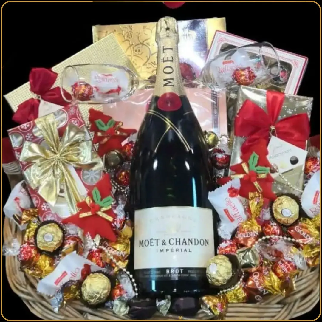 Novogodišnji poklon Moet Magnum je pažljivo aranžirana poklon korpa za najposebnije trenutke. Namenjena je kao poklon za Novu godinu za osobe koje cene luksuz, stil i tradiciju. U njenom središtu nalazi se šampanjac Moet Magnum 1,5l, okružen odabranim bombonjerama i čokoladama. Ovo je savršen poklon za muškarca koji voli prestiž, za poslovnog partnera, ili za proslavu koju želite da pretvorite u uspomenu. 🎉