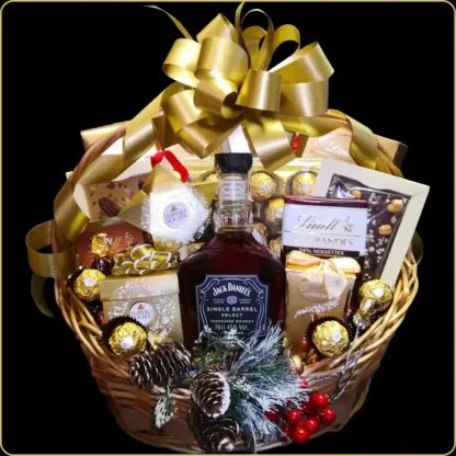 Novogodišnji poklon Single Barrel je snažna praznična korpa namenjena muškarcu koji zna šta voli. U njenom centru nalazi se prestižni Jack Daniels Single Barrel viski, okružen izborom luksuznih čokolada Lindt, Ferrero, Anthon Berg i Premier. Ručno aranžirana i dekorisana u prazničnom duhu, ova korpa donosi emociju, eleganciju i nezaboravan utisak.