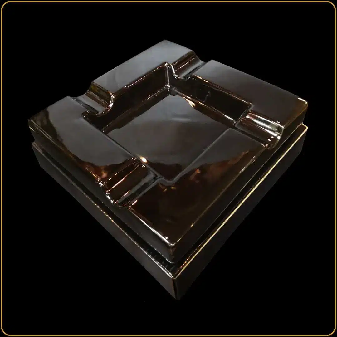 Ova pepeljara izrađena je od kvalitetne keramike, sa pažljivo oblikovanim ležištima za tompuse koja omogućavaju stabilno i sigurno odlaganje. Namenjena je istinskim ljubiteljima cigara koji žele uredan, elegantan i praktičan detalj u svom prostoru.