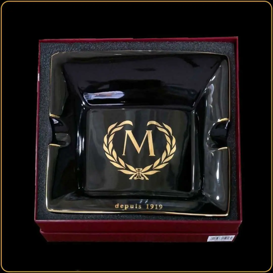 Pepeljara za tompuse M je izrađena od visokokvalitetne keramike, sa luksuznim zlatnim detaljima i prepoznatljivim „M“ simbolom u središtu. Savršeno oblikovana da primi dva tompusa, sa elegantno obrađenim žljebovima. Dolazi upakovana u tvrdu kartonsku kutiju sa zaštitnom penom, spremna za poklon bez dodatnog aranžiranja.