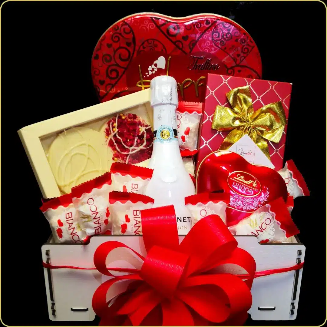 Bilo da se radi o poklonu za 8. mart, Danu zaljubljenih, godišnjici ili rođendanu, ova gajbica donosi spoj romantičnih poruka, elegantnog francuskog vina i raskošnih čokolada. Svaka stavka u njoj ima svoju ulogu – od penušavog vina koje simbolizuje proslavu, do srcolikih čokolada koje prenose emocije na najslađi način.