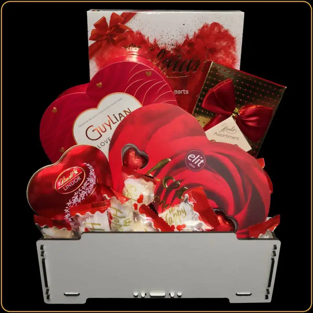 Kada želite da izrazite emocije bez mnogo reči, Poklon gajbica Amore je savršen način da to učinite. Ova pažljivo aranžirana gajbica prepuna je čokoladnih zalogaja u obliku srca – simbolima nežnosti i pažnje. Namenjena je onim trenucima kada želite da poklon bude više od predmeta – da bude poruka, emocija i uspomena. Idealan je poklon za devojku, poklon za Dan zaljubljenih, ili jednostavno – kao slatki znak pažnje koji govori „Volim te“.