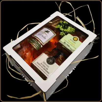 Srž ove gajbice čini rakija Gorda Dunja, elegantna flaša voćne rakije koja miriše na zrele dunje i mirne jeseni. Njena punoća i balans oduševljavaju svakog ko je proba. Rakija je sinonim za toplinu doma, ali i simbol poštovanja kada se poklanja. Upravo zato je ovo piće čest izbor kada biramo poklon korpe sa rakijom za važne prilike.