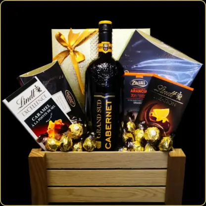 Poklon gajbica Grand Sud je više od poklona – to je poruka stila, pažnje i dobrog ukusa. Sa bogatim francuskim crvenim vinom i raskošnim izborom čokoladnih delikatesa, idealna je za poklon za muškarca koji zna da ceni trenutak. Ručno aranžirana i upakovana sa zlatnim detaljima, ova gajbica donosi eleganciju i emociju u jednom pakovanju. ✨