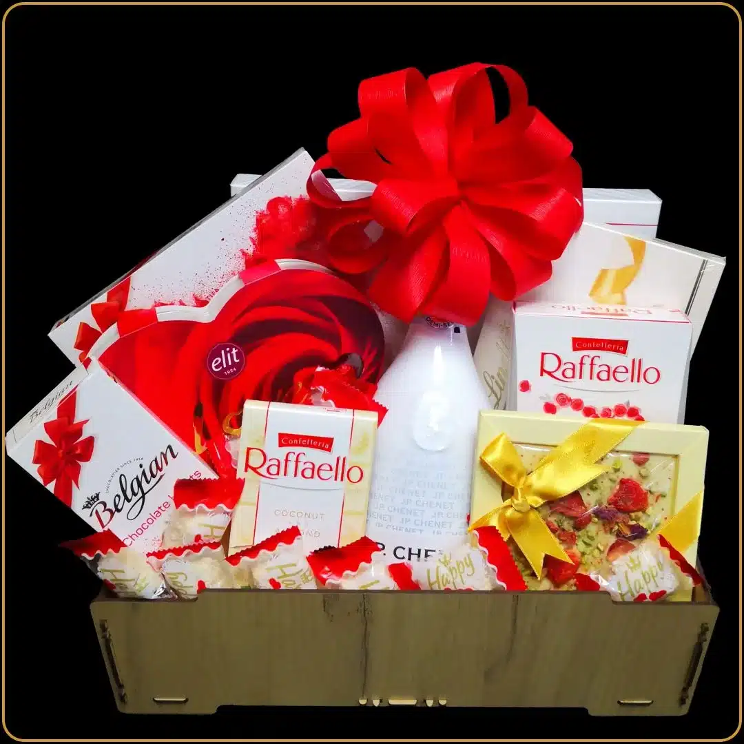 U svetu gde svaki poklon treba da govori više od reči, Poklon gajbica Kupidon dolazi kao simbol pažnje i topline. Za sve one trenutke kada želite da kažete „volim te“, „hvala“ ili „srećan rođendan“ na jedan poseban način, ova elegantna gajbica sadrži savršenu kombinaciju penušavog vina, čokoladnih dobrih stvari i ručno aranžiranog pakovanja. Idealna je kao poklon za devojku, kao pažnja za poklon korpu za žene ili za trenutak kada želite da urnebesno iznenadite. Ručno aranžirana, upakovana sa rafijom i mašnom, ova gajbica pruža “wow” efekat već na prvi pogled.