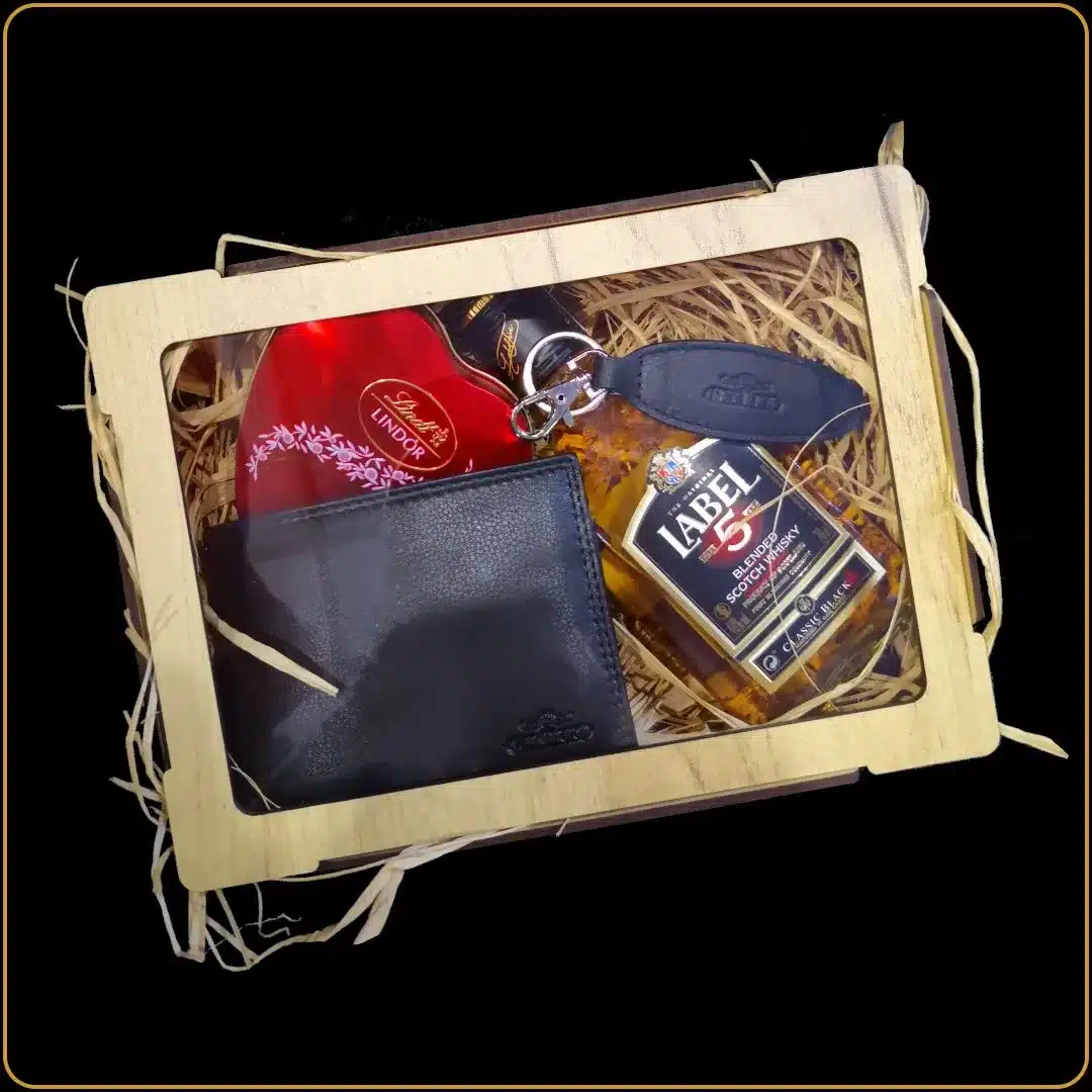 Muškarci često neće očekivati poklon, ali kada ga dobiju – žele da ima smisla. Poklon gajbica Label je upravo takav gest – neobičan, efektan i emotivan. Ovaj poklon za Dan zaljubljenih za muškarca kombinuje praktičnost, eleganciju i notu simbolike. U drvenoj gajbici spakovani su kožni novčanik i privezak Charro, mali viski i limenka čokolade u obliku srca. Sve to, ručno aranžirano, govori „Volim te“ na pravi muški način.