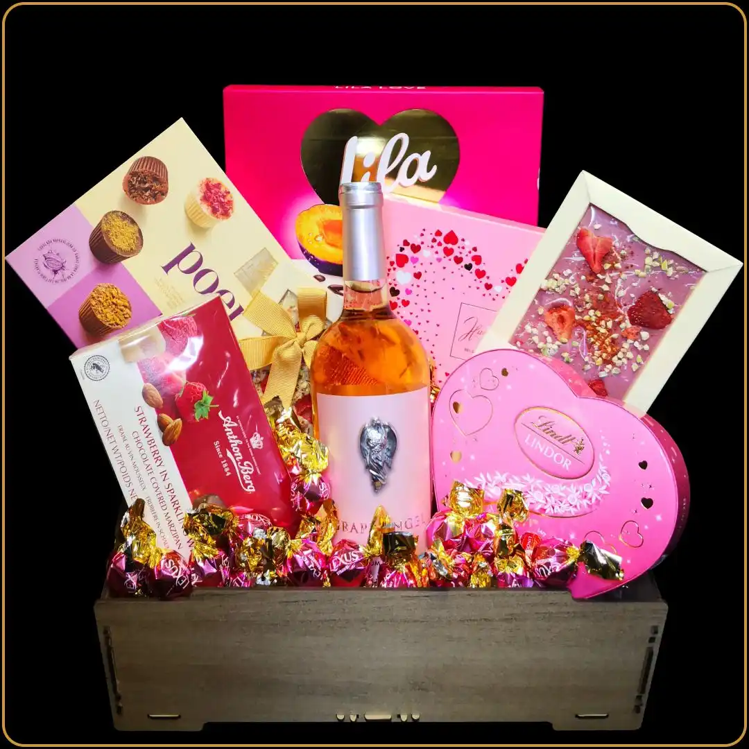 Lindt srce, Anthon Berg jagoda sa šampanjcem, Hamlet Hearts, Premier Ruby, Premier Poema i pažljivo odabrani voćni i čokoladni specijaliteti stvaraju bogatu, ali skladnu kompoziciju. Ova poklon gajbica za devojku ili suprugu namenjena je ženi koja voli detalje i sitnice koje ostaju u sećanju.