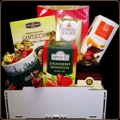 Ova gajbica sadrži brendirane proizvode iz uvoza – Ahmad Tea, Lindt, Royal Dansk – kao i estetski upakovanu poklon prezentaciju. Cena je formirana u skladu sa kvalitetom i pažnjom uloženom u svaku porudžbinu. Gajbica trenutno na akciji – iskoristite priliku dok traje zaliha.