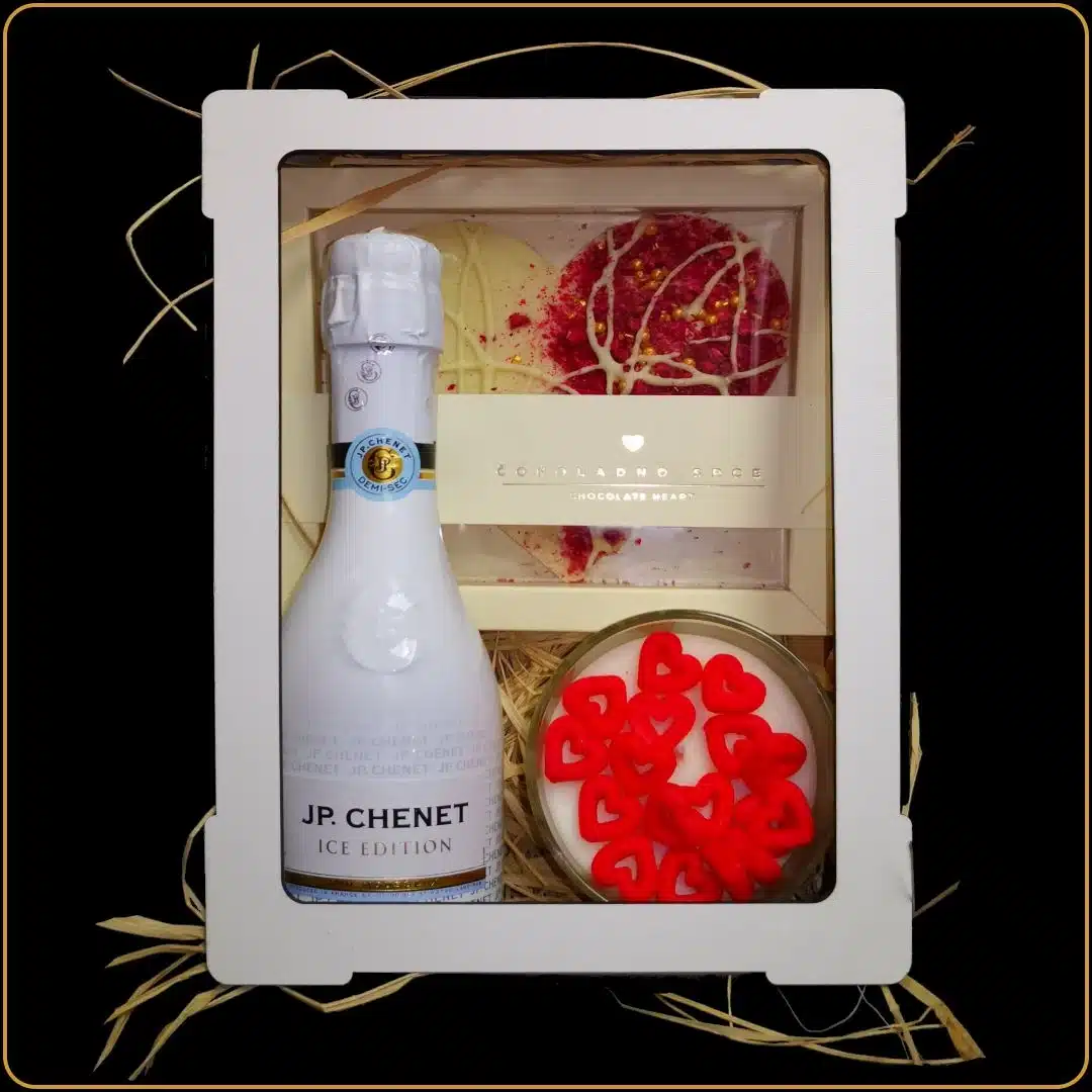 Postoji poklon koji govori više od reči – Poklon gajbica Sveća srce. Ovaj set je osmišljen da izrazi emociju na najlepši način: kroz nežnost, svetlost i miris ljubavi. Penušavo vino, ukrasna sveća i čokoladno srce pažljivo su uklopljeni u prirodnu gajbicu, stvarajući idealan poklon za Dan zaljubljenih, godišnjicu ili bilo koju priliku kada želite da pokažete koliko vam je stalo. Romantičan, nežan i elegantan, ovaj poklon prenosi emociju bez ijedne izgovorene reči.