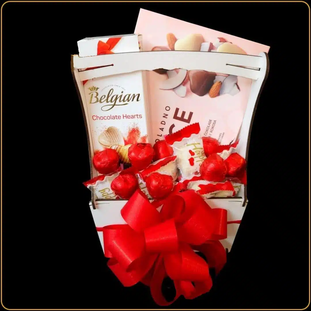 Ova poklon gajbica pripada kategoriji pristupačnih, ali pažljivo osmišljenih poklona. Njena vrednost nije samo u slatkišima, već u emociji koju prenosi. Upravo zato se često bira kao prvi ljubavni poklon ili kao mali znak pažnje koji ostaje upamćen.