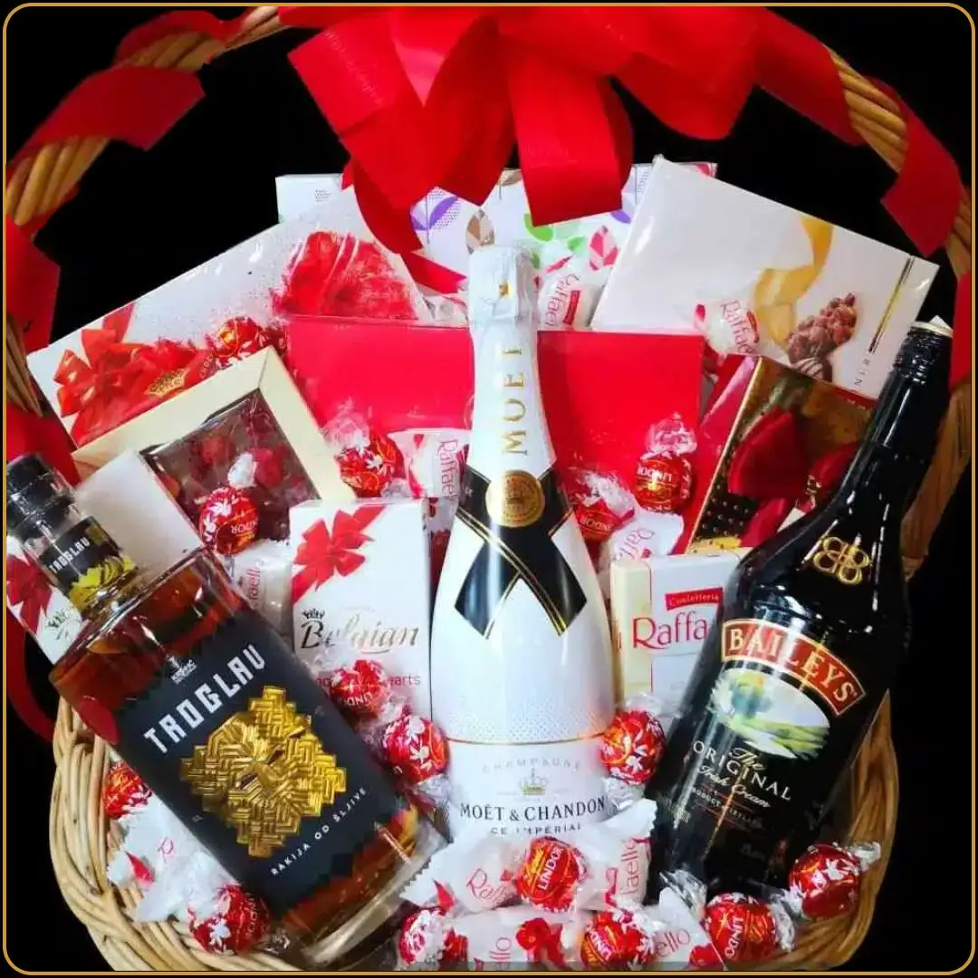 Ova korpa pripada premium klasi poklona – uz tri vrhunska pića i bogat izbor najfinijih bombonjera, poklanjate nešto što ima ukus, vrednost i emociju. Pravi izbor za posebne prilike kada želite da kažete „Zaslužuješ najbolje“.
