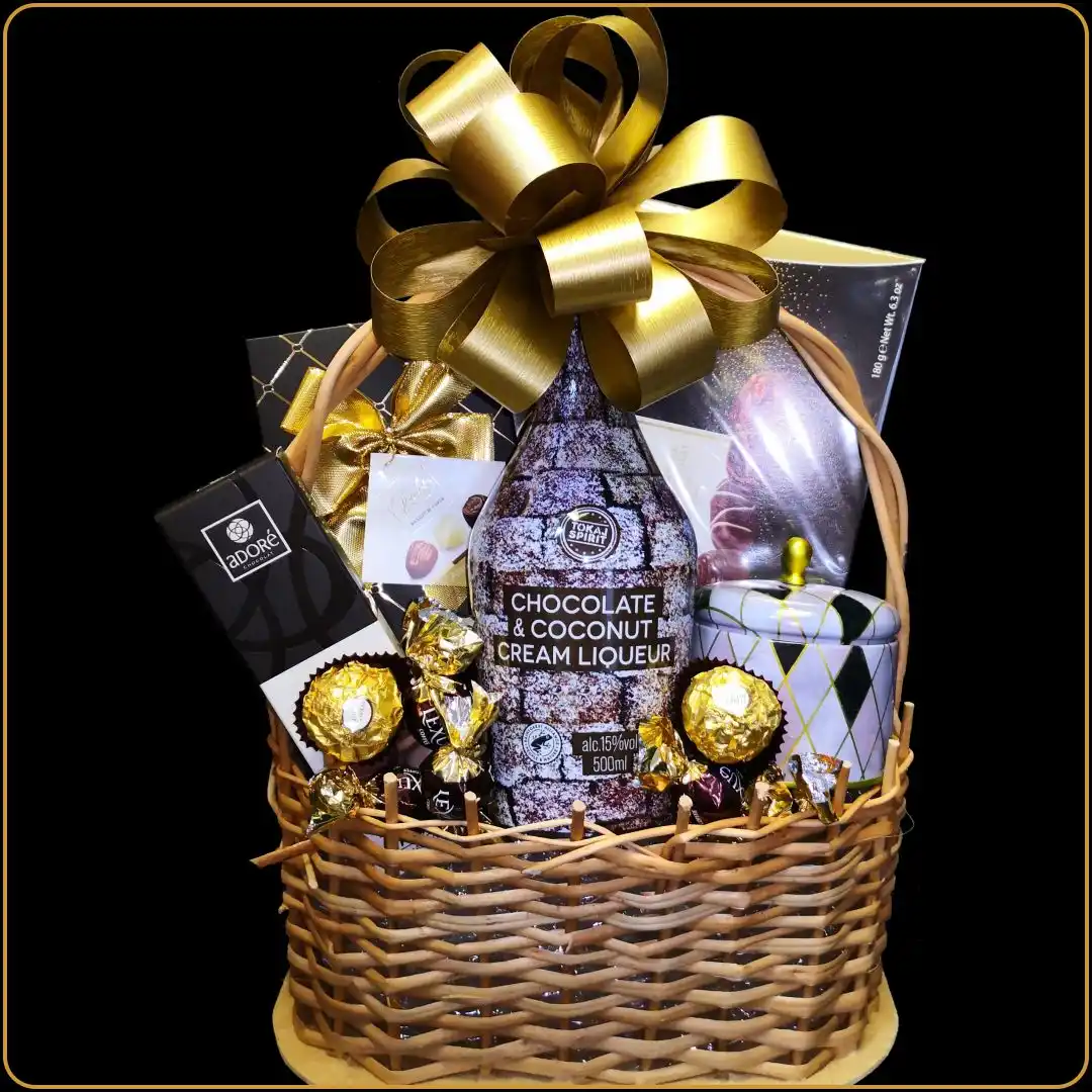 Poklon korpa Coconut predstavlja uravnotežen izbor kada poklon treba da spoji liker i čokoladne proizvode u jednostavnom poklon aranžmanu pogodnom za različite prilike darivanja.