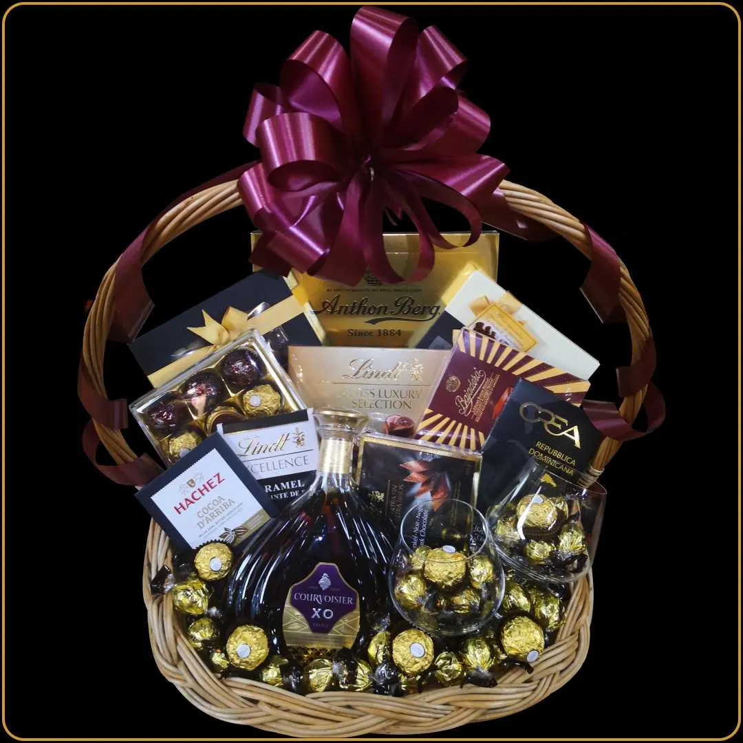 Poklon korpa Courvoisier XO je pažljivo kreirana za one koji cene vrhunski ukus, eleganciju i prestiž. Ova raskošna kombinacija francuskog konjaka i vrhunskih čokolada idealna je kao poklon za muža, poslovnog partnera ili za važnu godišnjicu. Svaki detalj je ručno aranžiran, sa ciljem da ostavi snažan utisak sofisticiranosti i pažnje. Ukoliko tražite VIP poklon koji se pamti, ova korpa je neprevaziđen izbor.