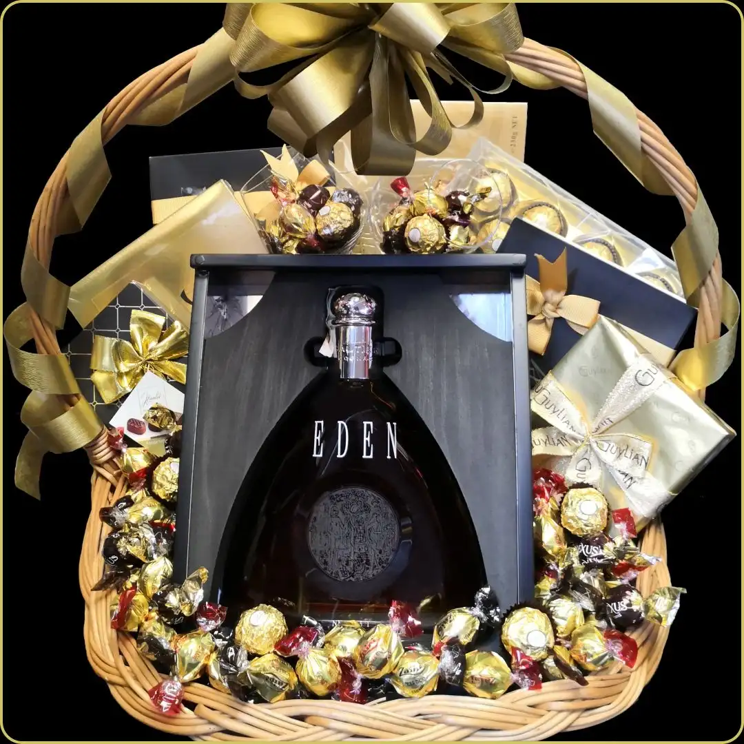 Poklon korpa Eden je ekskluzivni poklon za muškarca sa stilom, namenjen posebnim prilikama koje zaslužuju vrhunski gest pažnje. U njenom središtu nalazi se prestižni konjak Gautier Eden, upotpunjen bogatim izborom najfinijih bombonjera i čokoladnih delikatesa. Ručno aranžirana, ova poklon korpa predstavlja savršen poklon za muža, ali i izuzetan izbor kao VIP poklon za poslovne prilike.