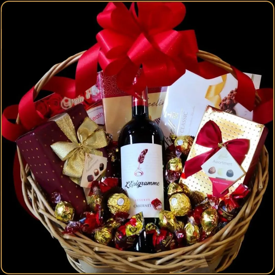 Poklon korpa Epigram je elegantan i ženstven poklon za one posebne trenutke kada želite da ostavite snažan utisak. U srcu ove korpe nalazi se moldavsko crveno vino u društvu vrhunskih čokoladnih bombonjera, aranžiranih u prefinjenoj pletenoj korpi sa crvenim detaljima. Idealan je poklon za rođendan, poklon za devojku ili nežan gest pažnje prema dami koja voli vino i slatkiše.