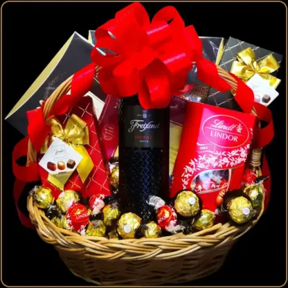 Ova poklon korpa pripada srednjem cenovnom rangu , ali po svojoj prezentaciji i izboru brendova deluje kao mnogo vredniji poklon. Kombinacija vina, Lindt i Mozart čokolada, pralina i Ferrera čini je poklonom koji nikoga ne ostavlja ravnodušnim.
