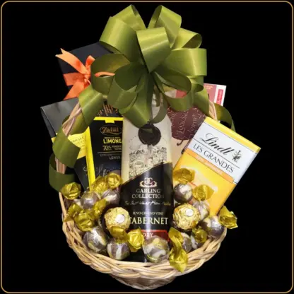 U srcu ove korpe nalazi se Garling Cabernet, crveno vino punog tela, savršeno usklađeno sa selekcijom čokoladnih poslastica. Ako volite poklone sa vinom, pogledajte i našu kolekciju poklon korpi sa vinom.