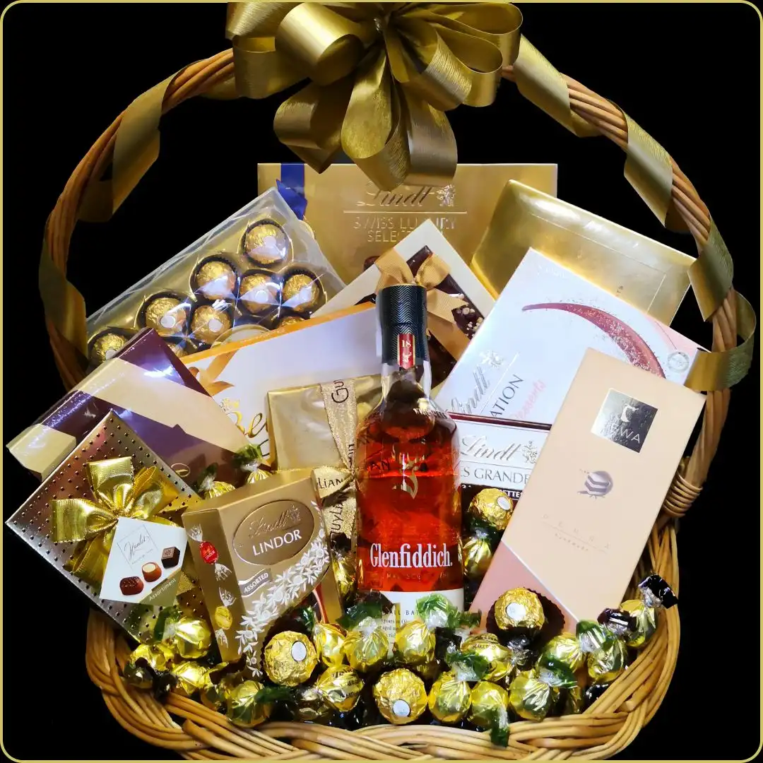 Poklon korpa Glenfiddich 18 je poklon za muškarca koji zna razliku između pića i uživanja. U pažljivo aranžiranoj pletenoj korpi nalazi se Glenfiddich 18 godina – škotski viski sa karakterom, okružen ekskluzivnim čokoladama, bombonjerama i premium slatkišima. Idealna za jubilarni rođendan, promociju ili znak zahvalnosti osobi sa stilom.
