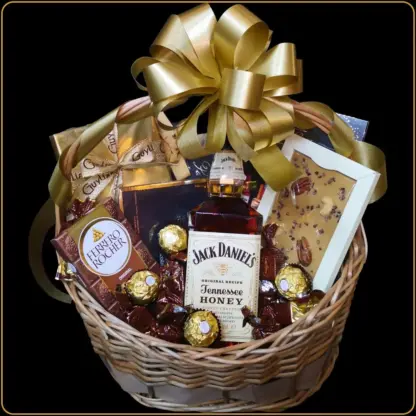 Ova poklon korpa sa viskijem pažljivo je osmišljena da zadovolji i najistančanije ukuse. Jack Daniels Honey donosi slatku notu hrasta, karamele i meda, dok svaka čokolada doprinosi harmoniji ukusa.