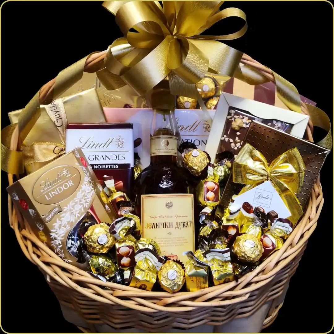 Poklon korpa Jelički Dukat je istinski luksuzni poklon za muškarca koji zna da ceni tradiciju, snagu ukusa i autentičnost domaće rakije. U srcu korpe nalazi se čuvena šljivovica Jelički Dukat, okružena selekcijom najfinijih čokoladnih bombonjera i slatkiša. Idealna je kao poklon za muža, godišnjicu, rođendan ili poslovni jubilej. Ručno aranžirana, ova korpa ostavlja snažan utisak elegancije i pažnje.