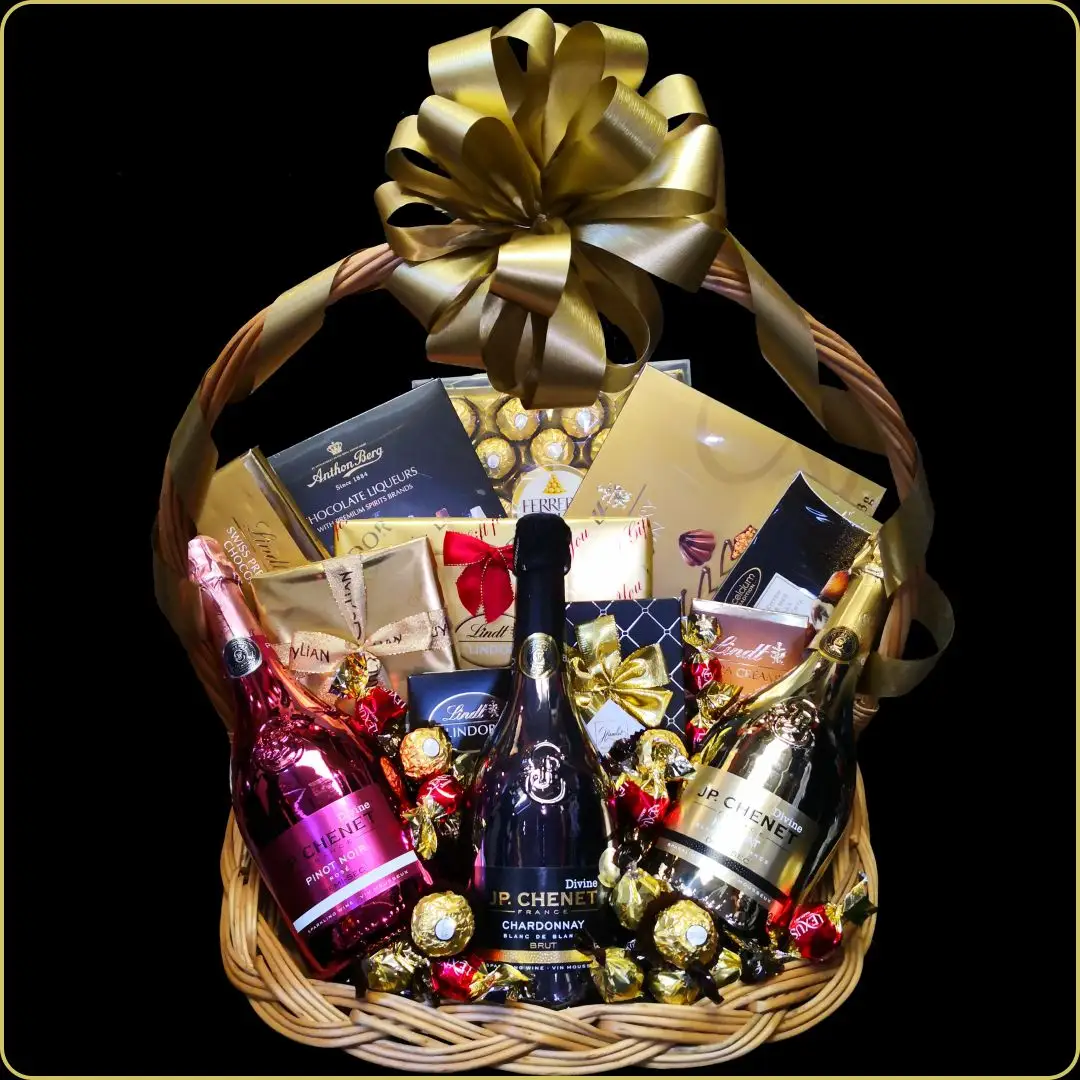 U srcu ove poklon korpe nalaze se tri elegantna JP Chenet penušavca – ružičasti Pinot Noir, klasični Chardonnay i slatki Muscat. Ovi šampanjci su sinonim za stil i proslavu, savršeni za poklon devojci ili kao poklon za godišnjicu. Preporučujemo i slične proizvode iz kolekcije poklon korpe sa šampanjcem.
