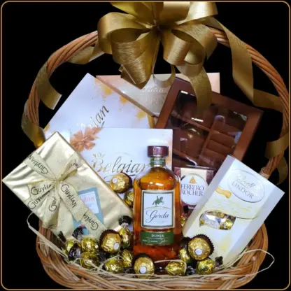 Poklon korpa Kraljica je stvorena za posebnu ženu – za kraljicu vašeg srca. U elegantnoj pletenoj korpi nalazi se rakija od dunje Gorda, ekskluzivna drvena kutija za nakit i izbor najlepših čokoladnih bombonjera. Ovaj poklon odiše raskošem i toplinom – savršen je poklon za devojku ili suprugu, kao i poklon za rođendan žene koji ostavlja bez daha. Ručno aranžirano, sa dušom i stilom.