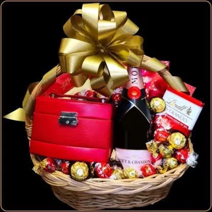 Poklon korpa Moet Lady je pravi izraz ženstvenosti, pažnje i glamura. Savršena je za dame koje cene finese, luksuz i osećaj kada se neko potrudi oko poklona. U elegantnu korpu, brižljivo smo smestili bočicu prestižnog Moët & Chandon Rosé Imperial šampanjca, kutiju za nakit i selekciju vrhunskih čokolada. Idealna je kao poklon za devojku, za rođendan žene ili godišnjicu. Ova korpa nije samo dar – ona je izjava pažnje.