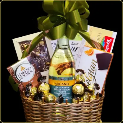 Poklon korpa Muller je elegantan poklon sa belim vinom i pažljivo biranim čokoladama – idealna kao poklon za muža, poklon za brata ili pažnja za kolegu koji zna da uživa u sitnicama. Sa pažljivo aranžiranim slatkišima i osvežavajućim Muller vinom, ova korpa nosi poruku zahvalnosti i ukusa. 🍷