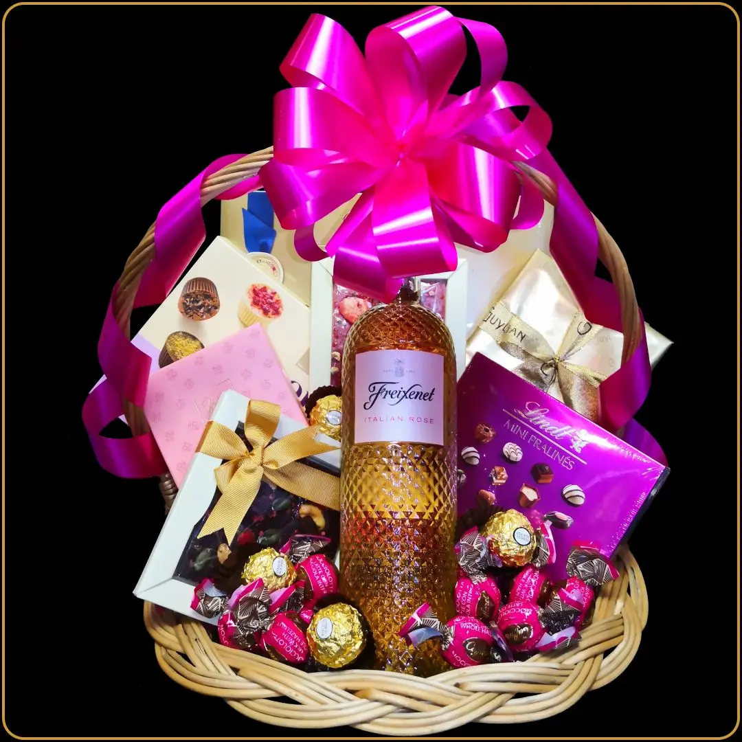Svaki proizvod u korpi biran je sa posebnom pažnjom – od prepoznatljivog Freixenet Rosé vina, do najcenjenijih evropskih čokolada: