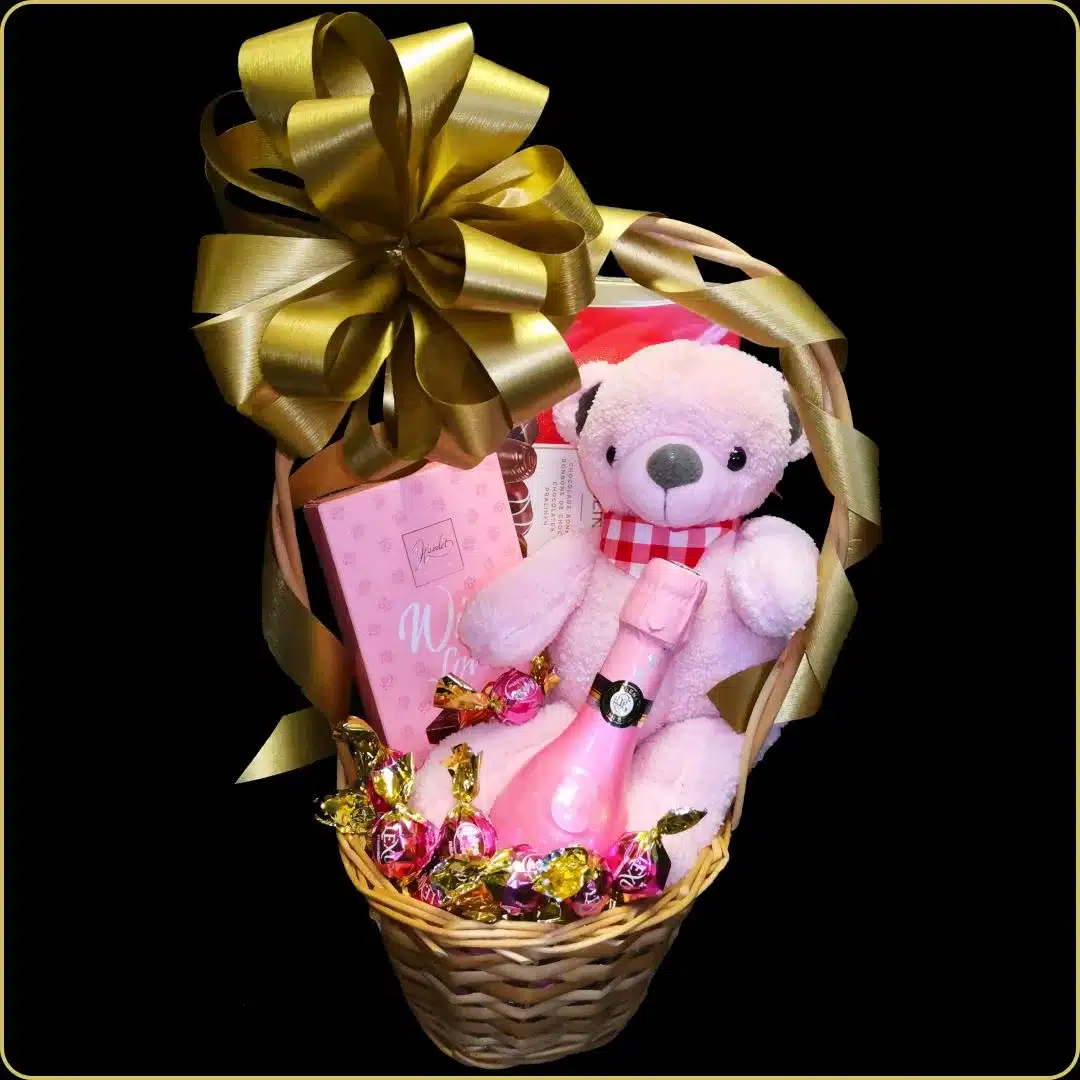 Poklon korpa Roze meda je idealan izbor kada želite da obradujete osobu koju volite – nežno, romantično i iskreno. U ručno aranžiranoj pletenoj korpi, nalazi se roze plišani meda, francusko penušavo vino i slatkiši koji poručuju: „Mislim na tebe“. Savršen je poklon za Dan zaljubljenih, poklon za devojku ili jednostavno – gest pažnje koji ostaje upamćen.