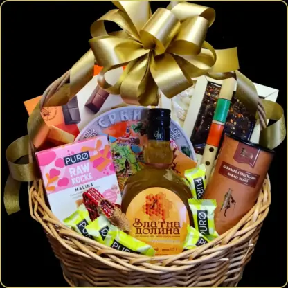 Kao poklon za slavu, poklon za oca, muža, ili direktora koji poštuje domaću kulturu – ova korpa je pravi izbor.