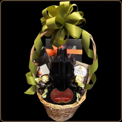Poklon korpa Stradivari Cabernet spaja muziku, vino i čokoladu u jedinstven poklon za posebne prilike. Crveno vino u flaši u obliku violine, Ferrero čokolade i vrhunske praline čine ovu korpu savršenom kao poklon za muškarca, poklon za rođendan ili poslovni poklon.