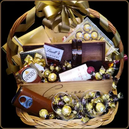 Bilo da kupujete poklon za muža ili želite da iznenadite poslovnog partnera nečim autentičnim, ova korpa nosi snažnu poruku pažnje. U svakom segmentu odiše pažljivim izborom – od vrhunskog konjaka, preko luksuznih čokolada, do elegantnih čaša i dodataka za cigare.