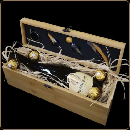 Poklon kutija sa vinom natur je savršen spoj tradicije i ukusa, kreiran za one koji znaju da uživaju u dobrim vinima. Bilo da je u pitanju poslovni poklon za saradnike ili poklon za prijatelja, ovaj set ostavlja snažan utisak. Uz elegantnu drvenu kutiju i dodatke za posluženje, postaje idealan izbor za svaku posebnu priliku.
