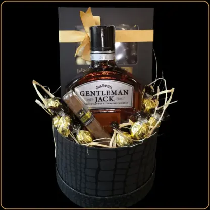U srcu seta nalazi se Gentleman Jack – poznati Tennessee viski dvostruko filtriran za dodatnu glatkoću. Njegova elegancija i bogat ukus sa notama karamele i vanile čine ga savršenim izborom za one koji znaju da cene kvalitet. Ako volite ovakav stil, pogledajte i našu selekciju poklon korpi sa viskijem.