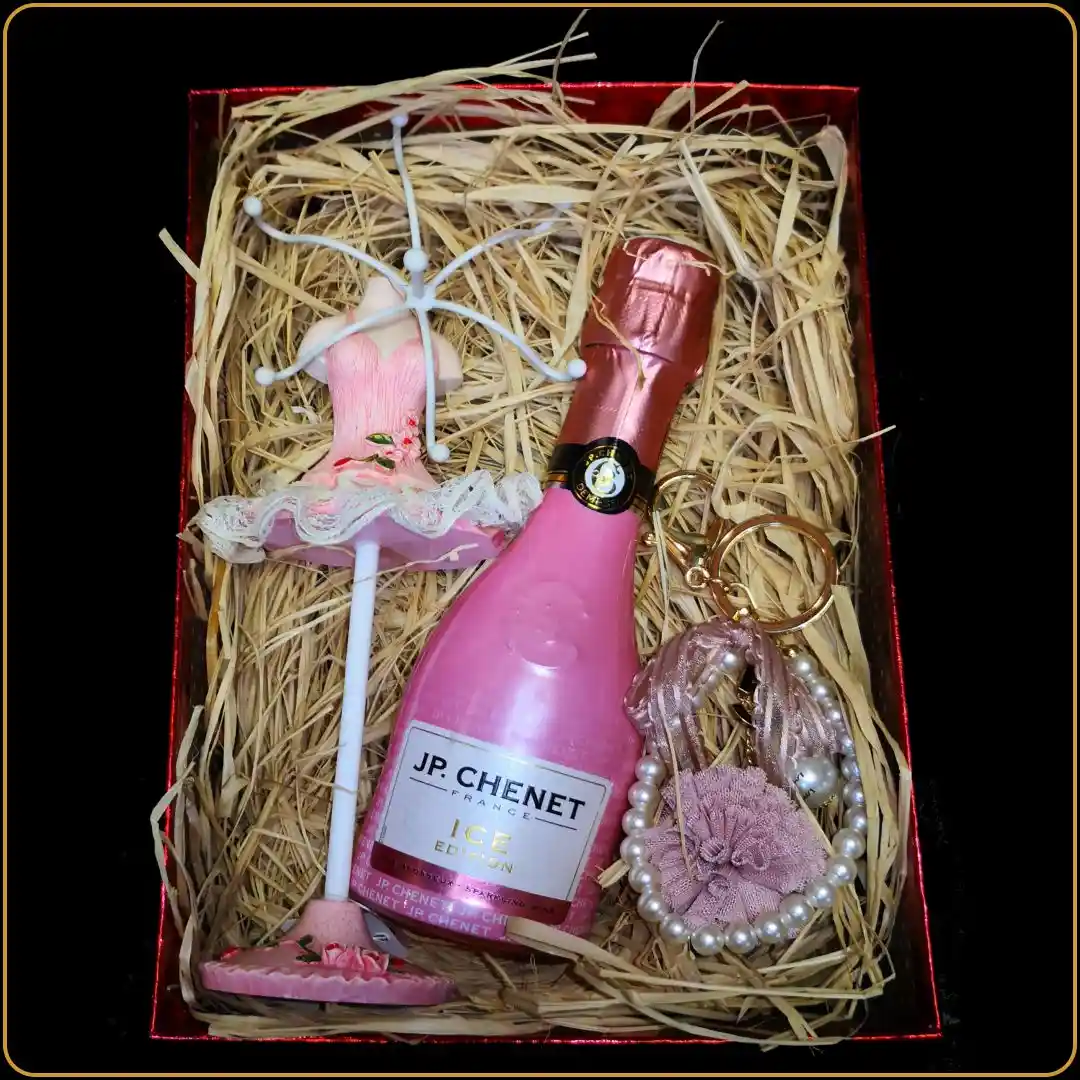 🌸 Mini boca penušavog vina u kombinaciji sa dekorativnim poklon elementima čini ovaj set prikladnim za manje proslave, poklon iznenađenja ili simboličan znak pažnje.