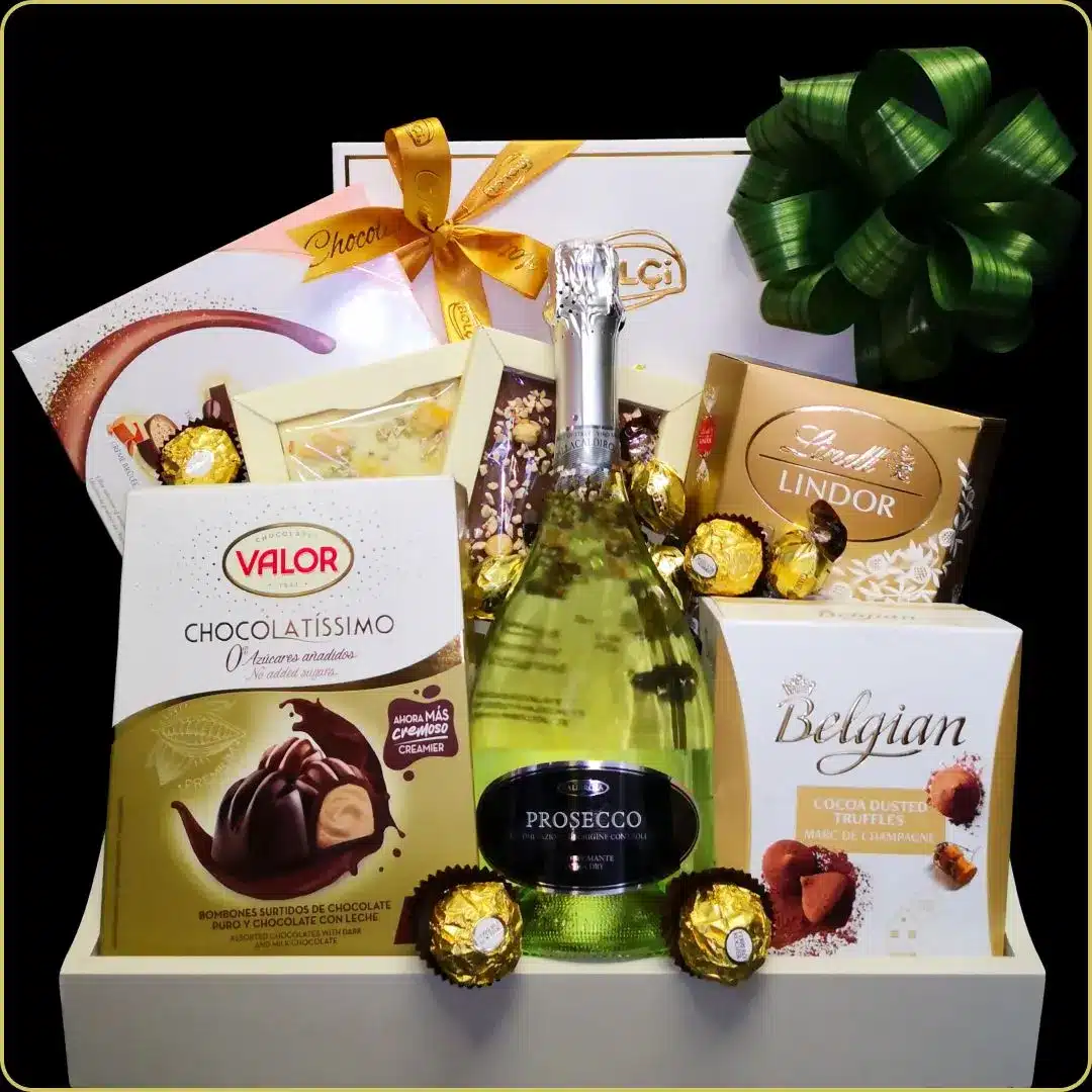U srcu ovog seta nalazi se Prosecco – penušavo vino koje simbolizuje radost, svežinu i eleganciju. Savršen je izbor za one trenutke koje želite da obeležite stilom. Ako volite kombinaciju vina i slatkiša, pogledajte i naše poklon korpe sa šampanjcem koje prenose sofisticiranu poruku pažnje.