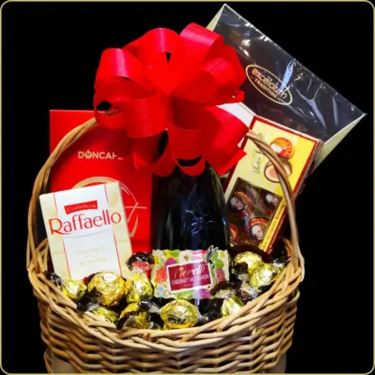 Poklon za slavu Fiorelli je stvoren za trenutke kada želite da darujete pažnju, ukus i eleganciju u jednom poklonu. U njegovom središtu nalazi se voćno crveno vino, okruženo najfinijim čokoladama, kafom i bombonjerama koje su provereni simboli pažnje. Ova korpa je savršena za sve prilike kada ne želite da dođete praznih ruku – bilo da idete kod komšije, prijatelja, rodbine ili poslovnog partnera.