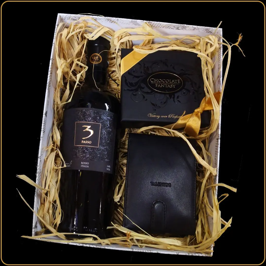 Set 3 Passo je poslovni poklon koji ostavlja snažan utisak. Savršeno osmišljen za muškarce sa stilom, ovaj set kombinuje italijansko crveno vino, ručno pravljenu čokoladu i kožni novčanik – pažljivo upakovane u elegantnu kutiju sa prirodnim detaljima. Namenjen je onima koji žele da ostave utisak koji se pamti – bilo da je reč o poklonu za direktora, poslovnom partneru ili važnom klijentu.