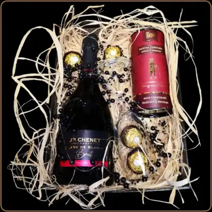 Set Brut je komercijalni poklon model iz Portobello kolekcije namenjen jednostavnim poslovnim gestovima i prilikama u kojima poklon treba da bude diskretan i jasan. Kompozicija je formirana oko penušavog vina JP Chenet Blanc de Blanc Brut.