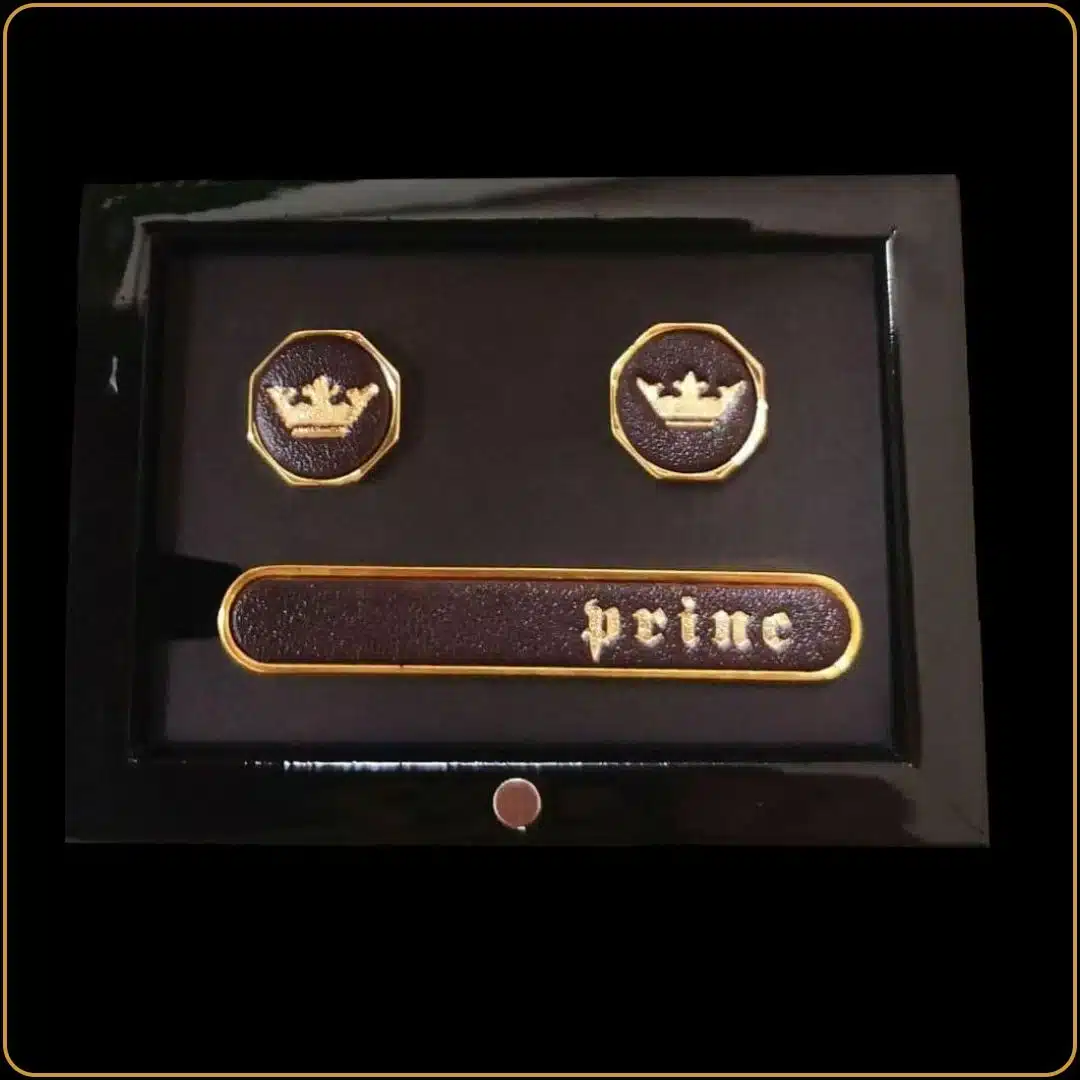 - 📍 Igle za kravatu – sa istim simbolom i gravurom “prince”, za dodatnu notu elegancije