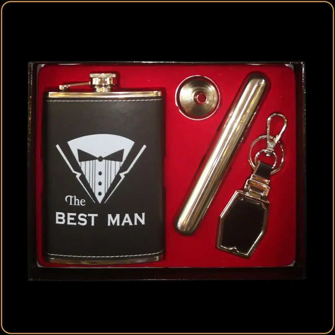 - 🥃 Pljoska od nerđajućeg čelika sa natpisom „The Best Man“ – elegantna, izdržljiva i praktična za nošenje